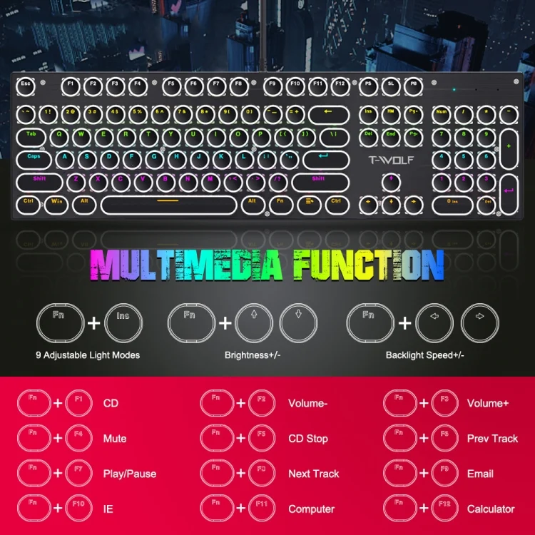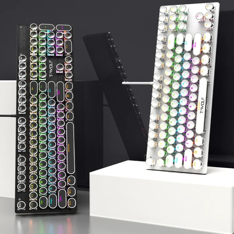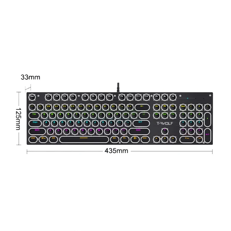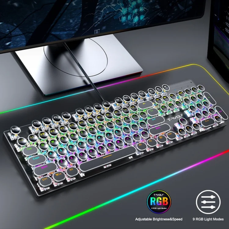 T-WOLF T75 104 Keys Adjustable RGB Light Computer Game Wired Mechanical Keyboard