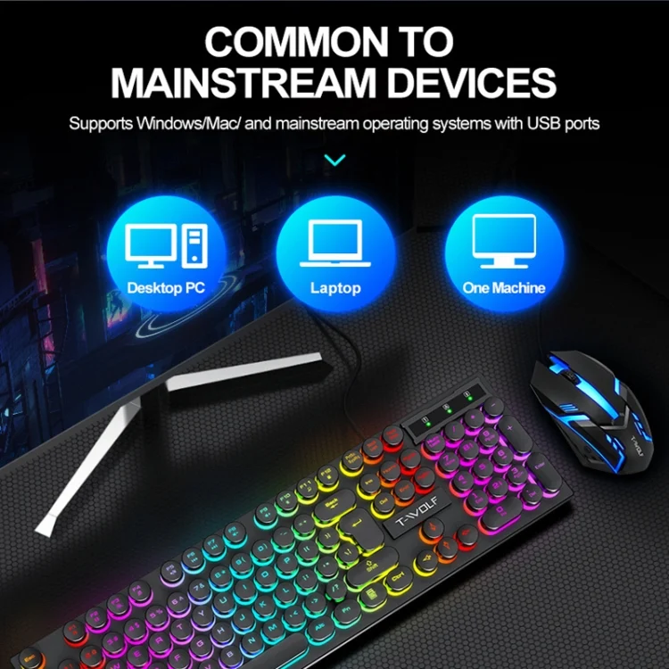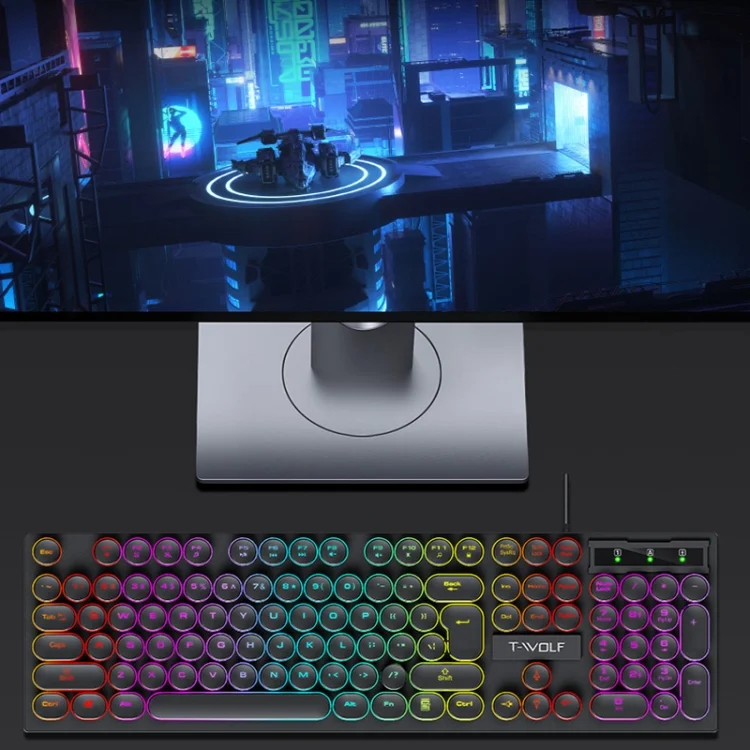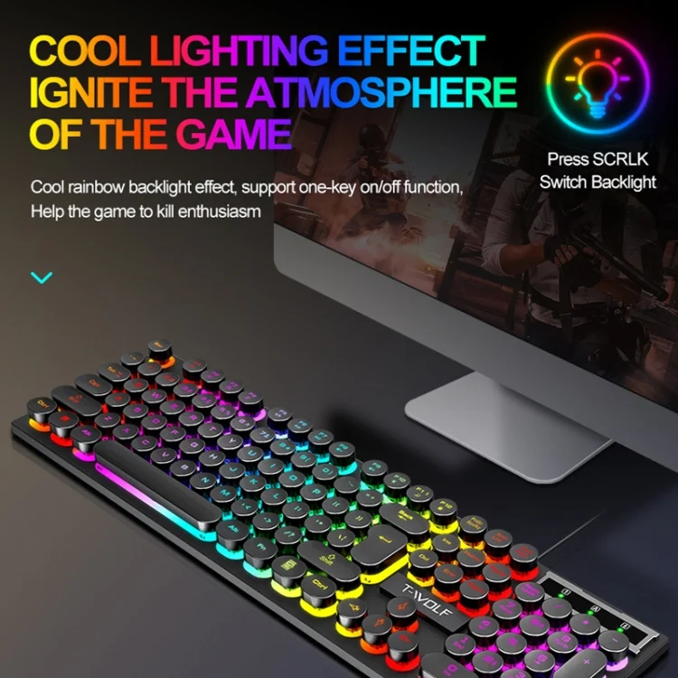 T-WOLF T80 104-Keys RGB Illuminated Office Game Wired Punk Retro Keyboard