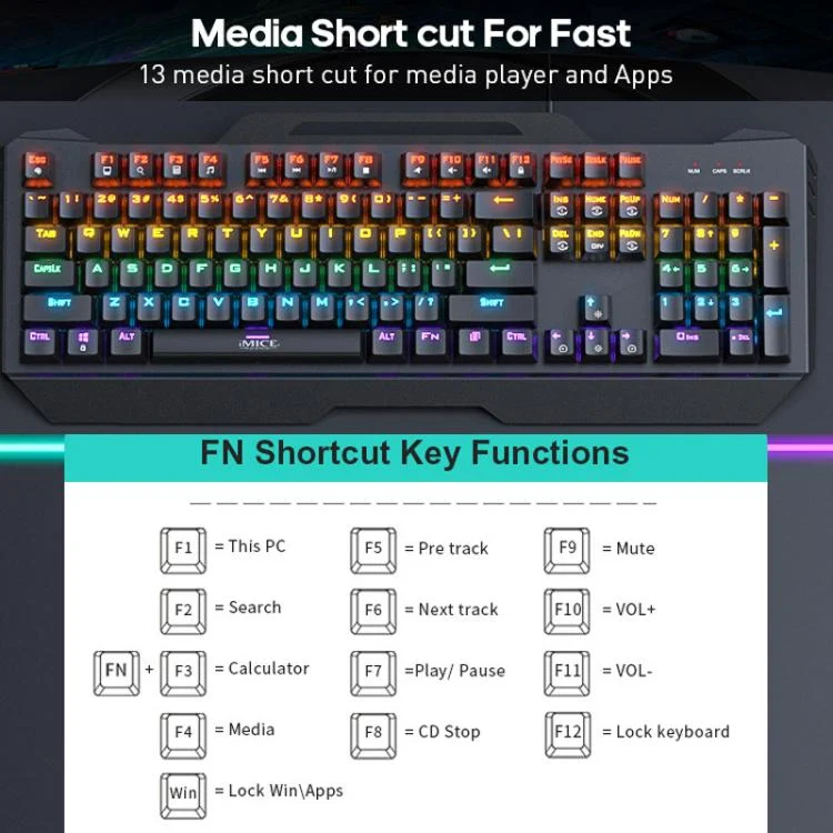 iMICE GK-800 87 Keys USB Wired RGB Round Keycap Mechanical Keyboard