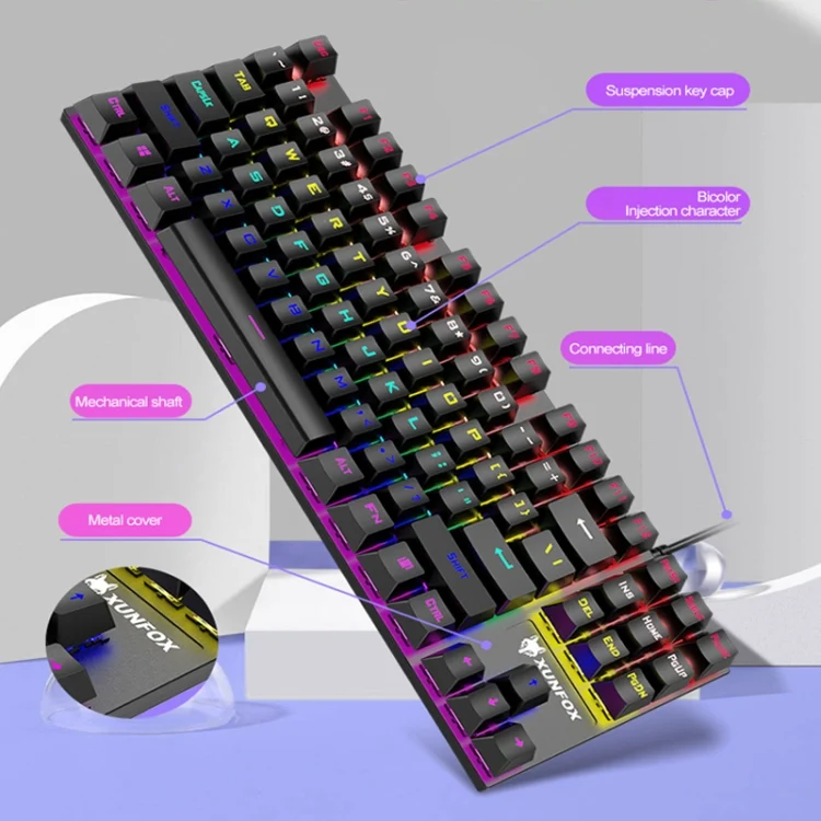 XUNFOX K80 87 Keys Wired Gaming Mechanical Illuminated Keyboard, Cable Length:1.5m