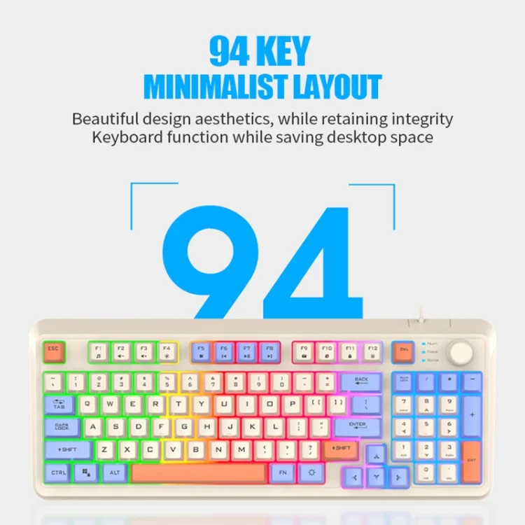 XUNFOX K82 Three-colors 94-Keys Blacklit USB Wired Gaming Keyboard, Cable Length: 1.5m