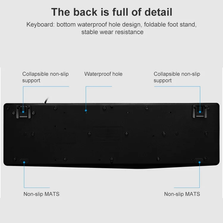 5. Keyboard: Waterproof hole design at the bottom, foldable tripod, stable and wear-resistant.