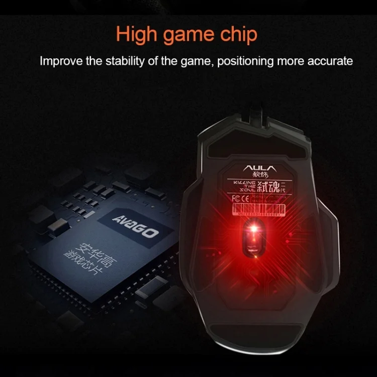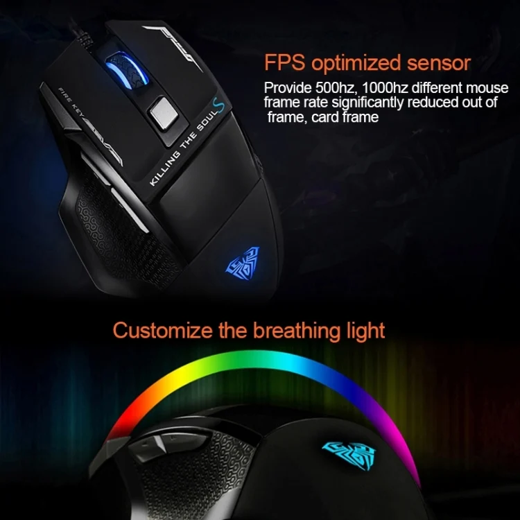 AULA Series SoulKiller II Colourful Light 7D Optical Competitive USB Wired Game Mouse, Maximum Resolution of 3500 DPI(Black)