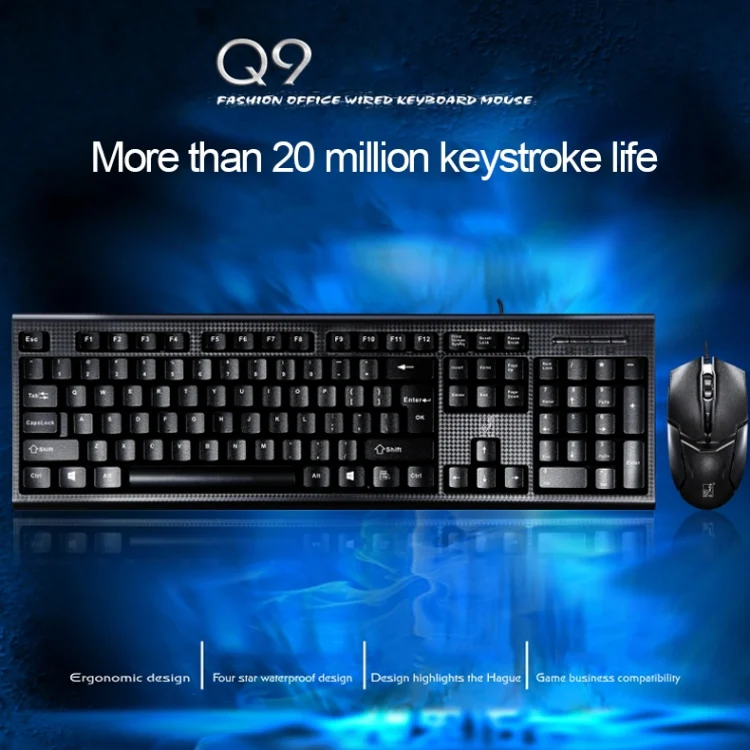 Chasing Leopard Q9 1600 DPI Professional Wired Grid Texture Gaming Office Keyboard + Optical Mouse Kit