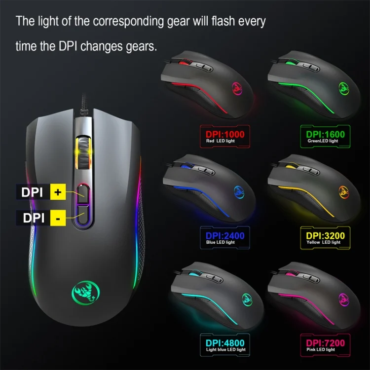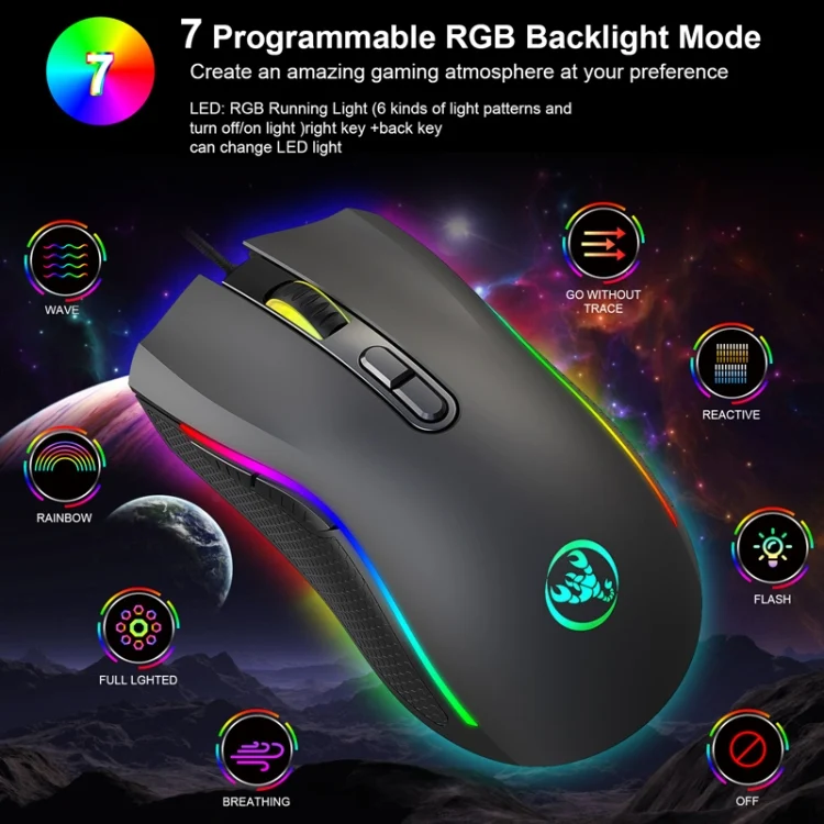 HXSJ A869 Type-C 7200dpi 6-modes Adjustable 7-keys RGB Light Wired Game Mouse