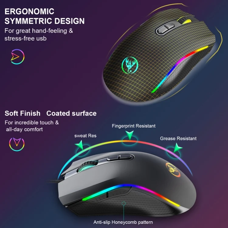 HXSJ A869 Colorful Glowing Wired Game 7-Keys 3200 DPI Adjustable Ergonomics Optical Mouse