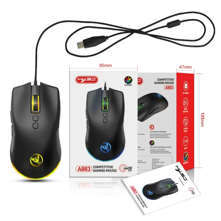HXSJ A883 7 Keys 6400DPI RGB Light Mechanical Gaming Wired Mouse