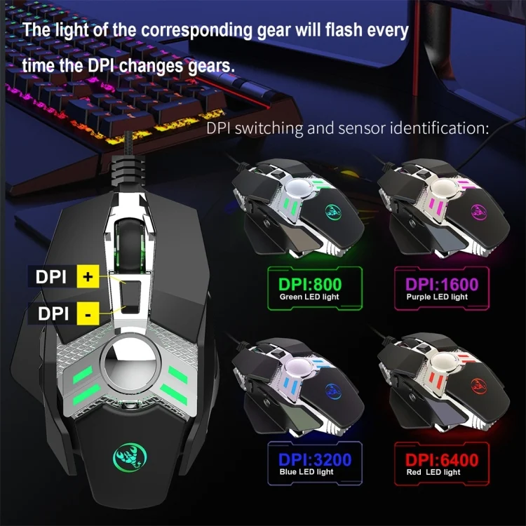 HXSJ J200 7 Keys Programmable Wired E-sports Mechanical Mouse with Light