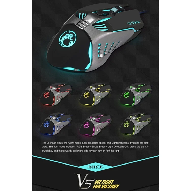 iMICE V5 USB 7 Buttons 4000 DPI Wired Optical Colorful Backlight Gaming Mouse for Computer PC Laptop