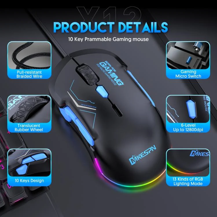 1. X12 Wired Gaming Mouse – High-performance ambidextrous mouse with 10 programmable buttons, 12800 DPI customization, and dynamic RGB lighting. Ideal for gaming and office use.