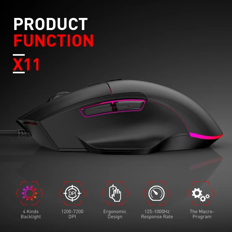 MKESPN X11 7-buttons 7200DPI RGB Wired Macro-definition Gaming Mouse