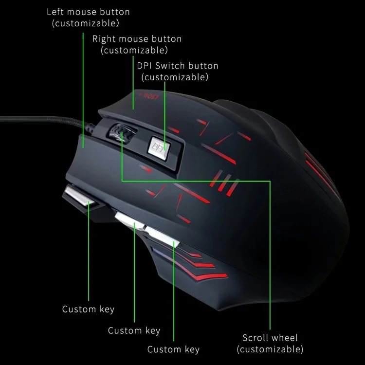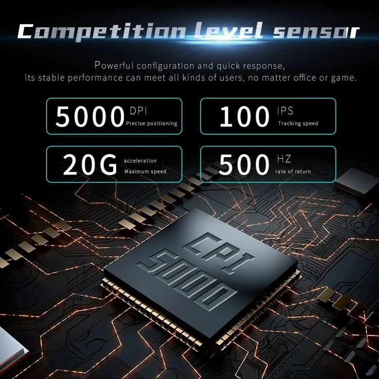 2. 6-speed DPI adjustment (1000-1600-2400-3200-4000-500DPI), no matter game or office drawing, to meet your needs