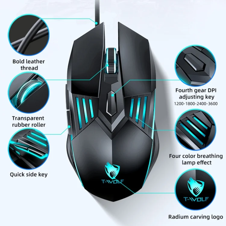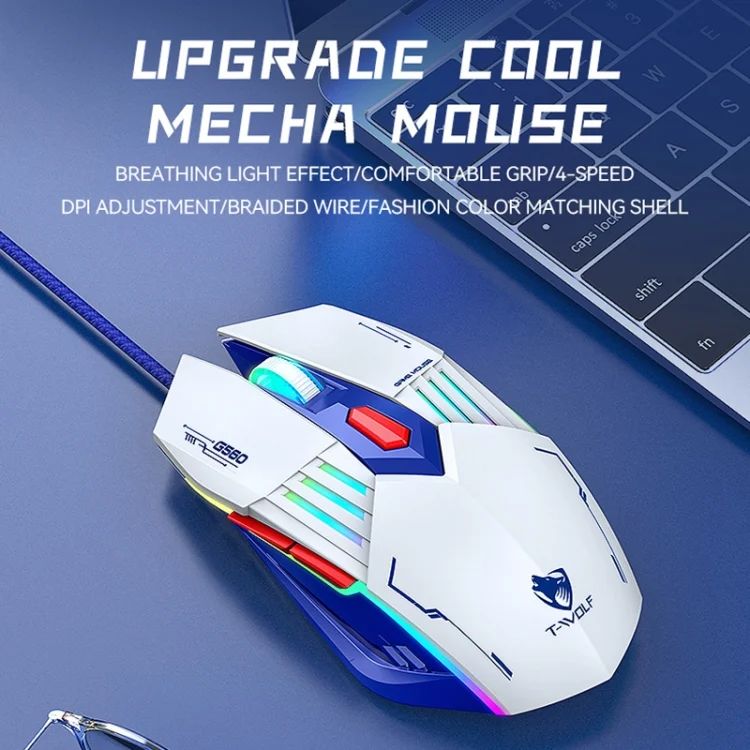 T-WOLF G560 6-keys Cool Breathing Light Gaming Wired Mouse Mechanical Office Silent Mouse