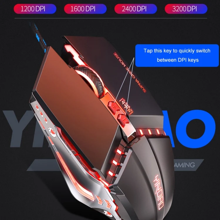 YINDIAO 3200DPI 4-modes Adjustable 7-keys RGB Light Wired Metal Mechanical Hard Core Macro Mouse, Style: Audio Version