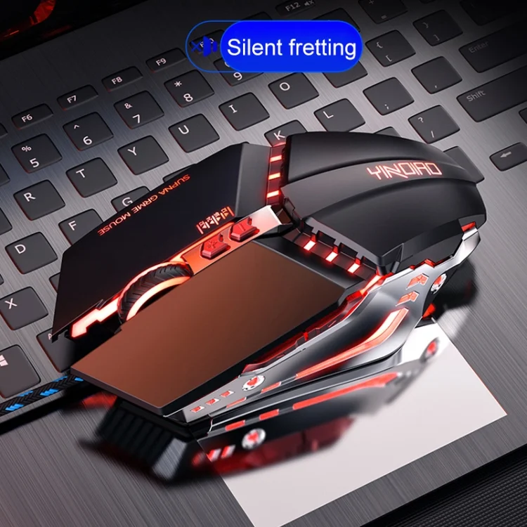 YINDIAO 3200DPI 4-modes Adjustable 7-keys RGB Light Wired Metal Mechanical Hard Core Macro Mouse, Style: Silent Version
