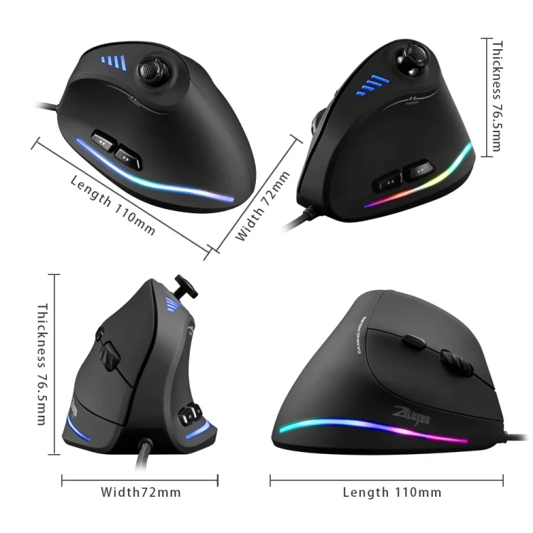 ZELOTES T30 6-keys Vertical Grip Detachable Ergonomic Wired Mouse