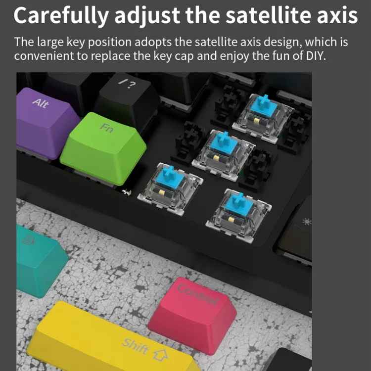 6. The large key position adopts satellite shaft design, which is convenient to replace the key cap. After repeated parameter comparison and adjustment by professional technicians, the feel of the shaft key is restored.