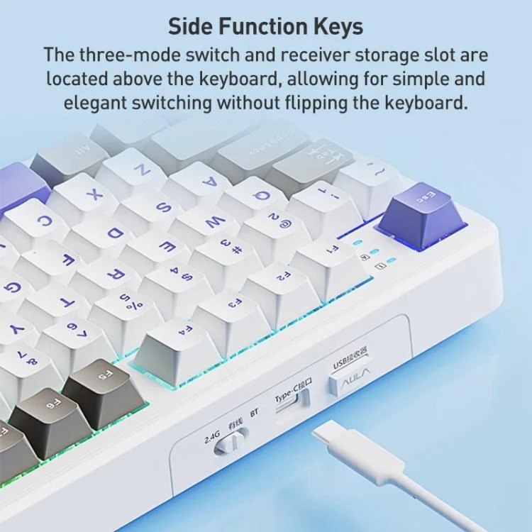 AULA F108 108 Keys Wired/2.4G/Bluetooth Three Model Customizable RGB Gaming Mechanical Keyboard