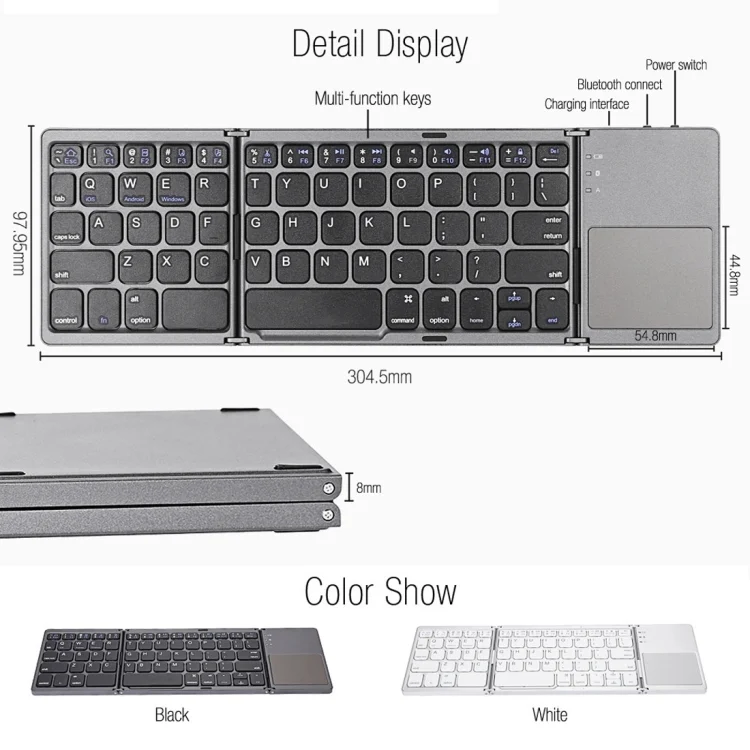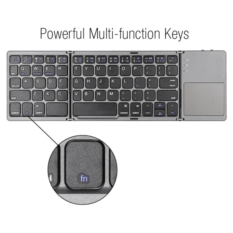 B033 Rechargeable 3-Folding 64 Keys Bluetooth Wireless Keyboard with Touchpad