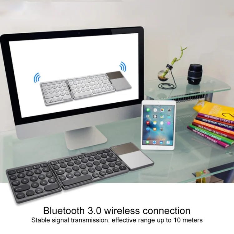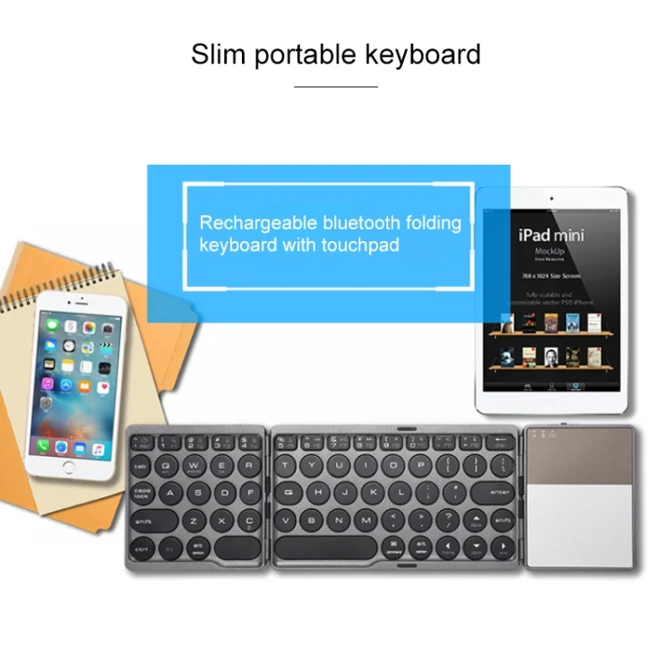 GK408 Three-fold Rechargeable Wireless Bluetooth Keyboard with Touchpad, Support Android / IOS / Windows