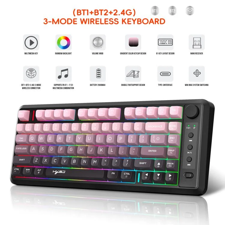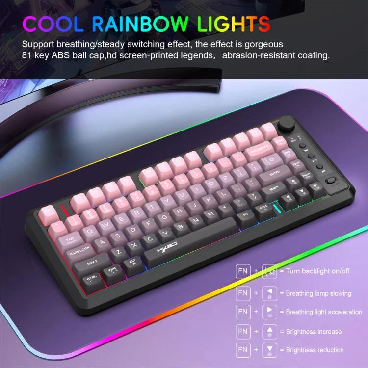 HXSJ L400 Three-mode Wireless RGB Light Thin Film 81 Keys Keyboard