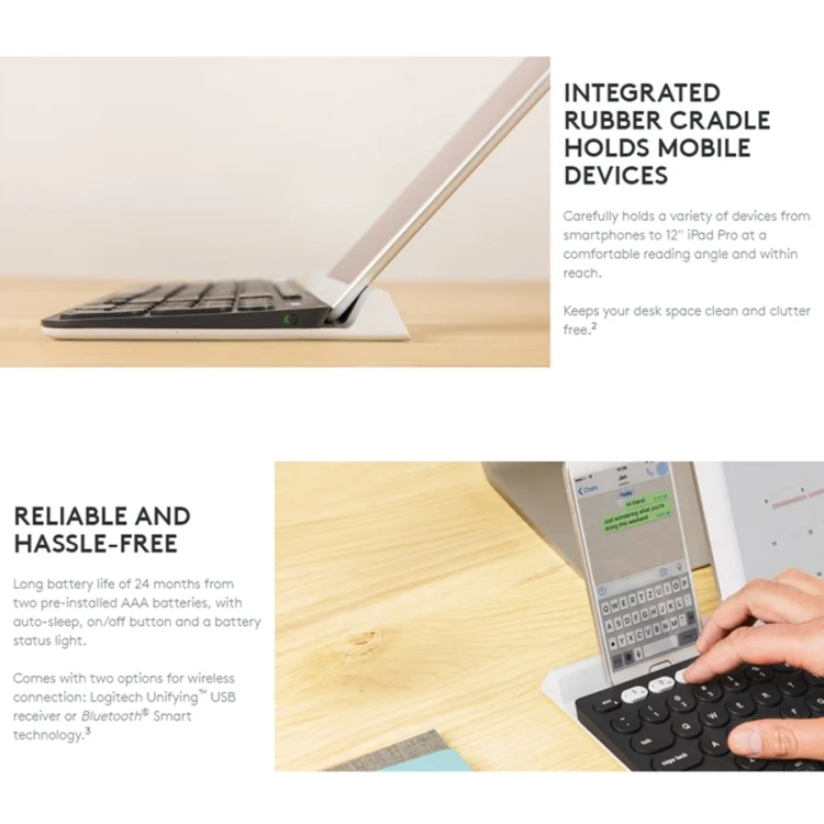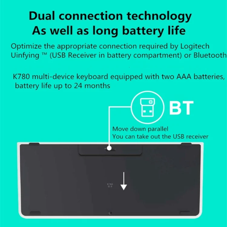 Logitech K780 Multi-device Bluetooth + Unifying Dual Mode Wireless Keyboard with Stand