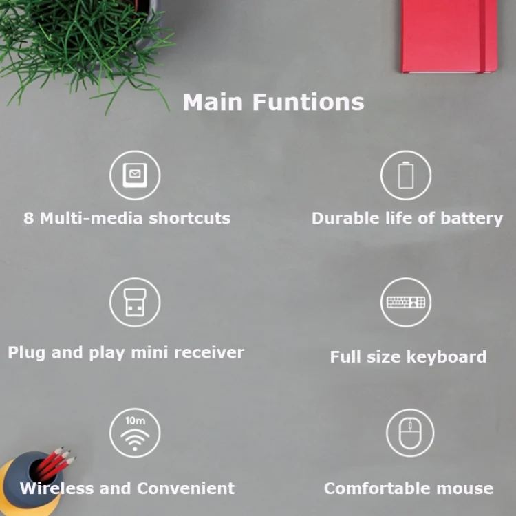 5. Long-lasting battery life: The keyboard battery life is up to 36 months, the mouse battery life is up to 12 months, and it has a power switch, so you can avoid the trouble of changing batteries for months. (The mouse requires 1 AA battery and the keyboard requires 2 AAA batteries, both not included).