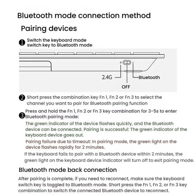 3. Quick switching between Bluetooth and receiver mode (2.4G mode), switch by toggling the mode switch