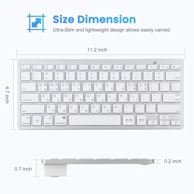 WB-8022 Ultra-thin Wireless Bluetooth Keyboard for iPad, Samsung, Huawei, Xiaomi, Tablet PCs or Smartphones, Ko Language Keys