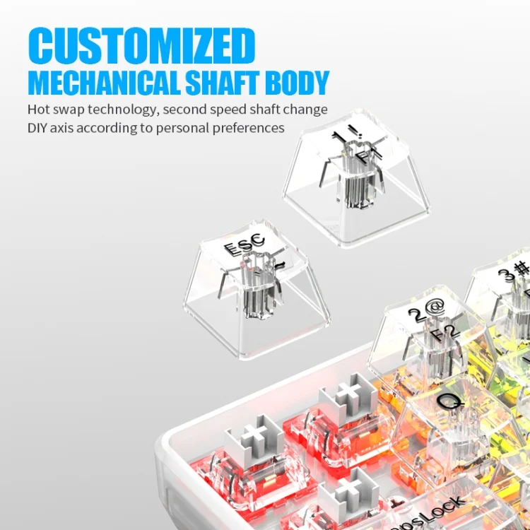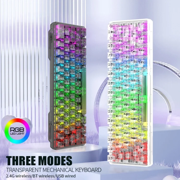 XUNFOX K30 Pro 2.4G + BT + Wired Transparent 61-Keys Mechanical White Axis Keyboard