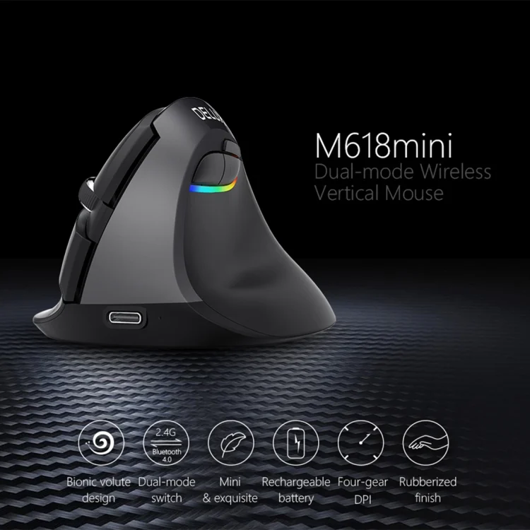 DELUX M618 Mini 2.4G Wireless 2400DPI USB Rechargeable Ergonomic Vertical Mouse