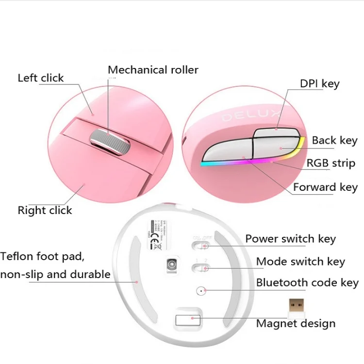 DELUX M618Mini Colorful Wireless Luminous Vertical Mouse Bluetooth Rechargeable Vertical Mouse