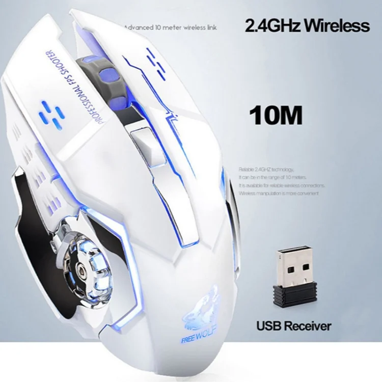 FREEDOM-WOLF X8 2400 DPI 6 Keys 2.4G Wireless Charging Silent Luminous Gaming Mechanical Mouse