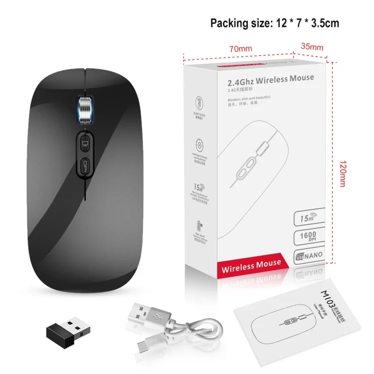 HXSJ M103 1600DPI UV 2.4GHz Wireless Rechargeable Mouse