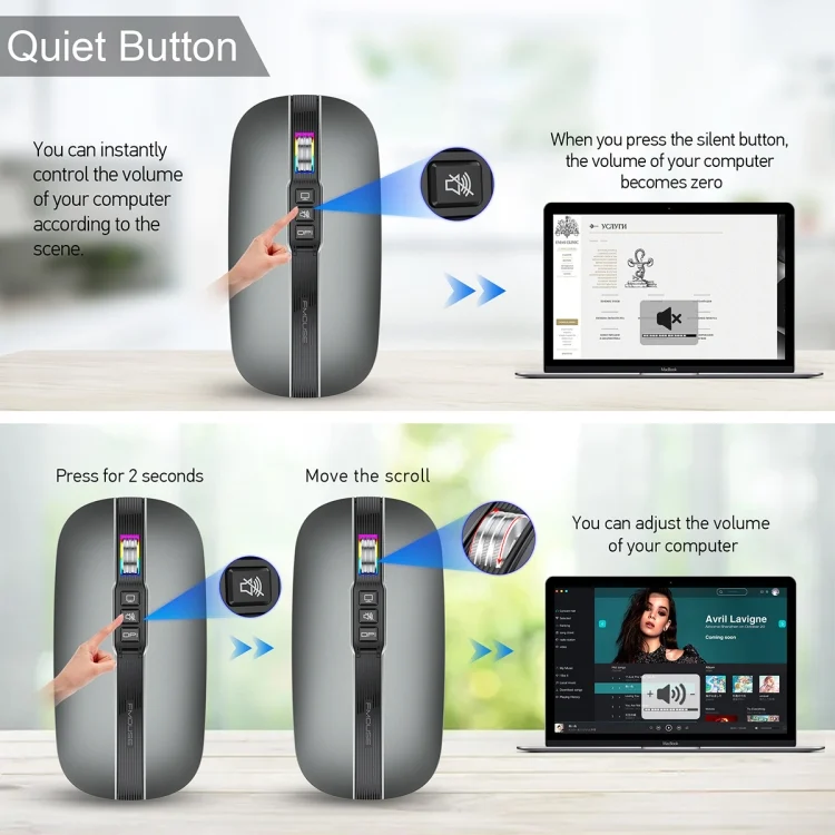 HXSJ M113 2400DPI Dual Mode 2.4GHz + Bluetooth 5.1 Wireless Mouse