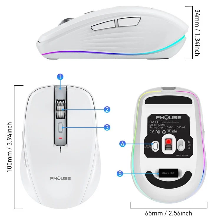 HXSJ M303 2400DPI Dual Mode 2.4GHz + Bluetooth 5.1 Wireless Mouse