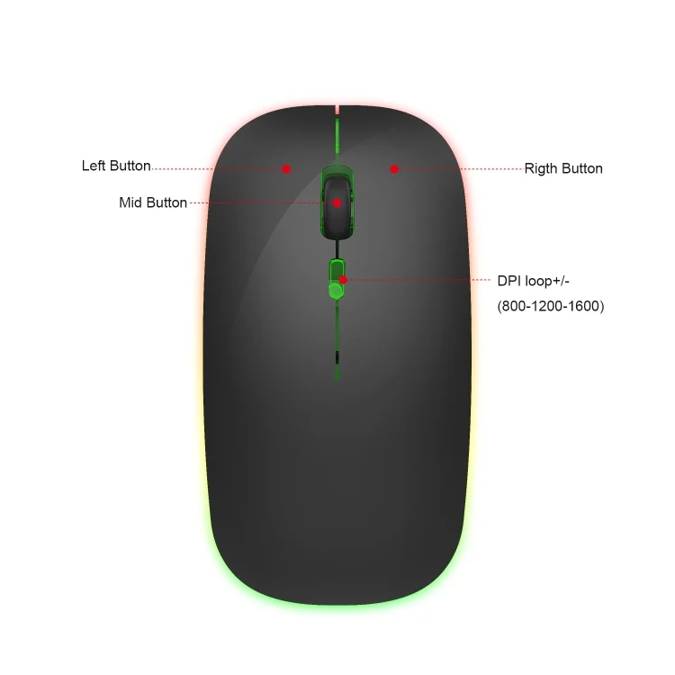MCSaite MC-369AG USB-C / Type-C 1600DPI Three-speed Adjustable 4-button Wireless Optical Mouse