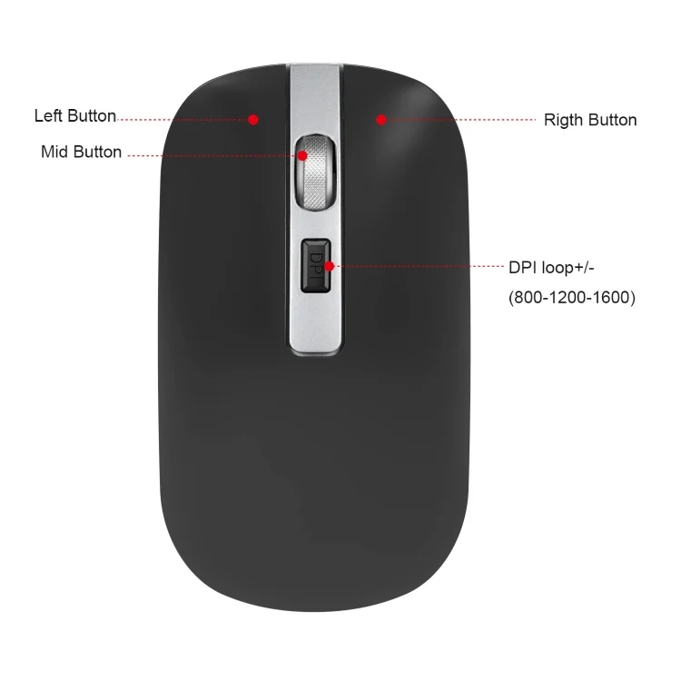 3. Three-speed DPI adjustment design, 800,1200,1600. (The default is 1200dpi).