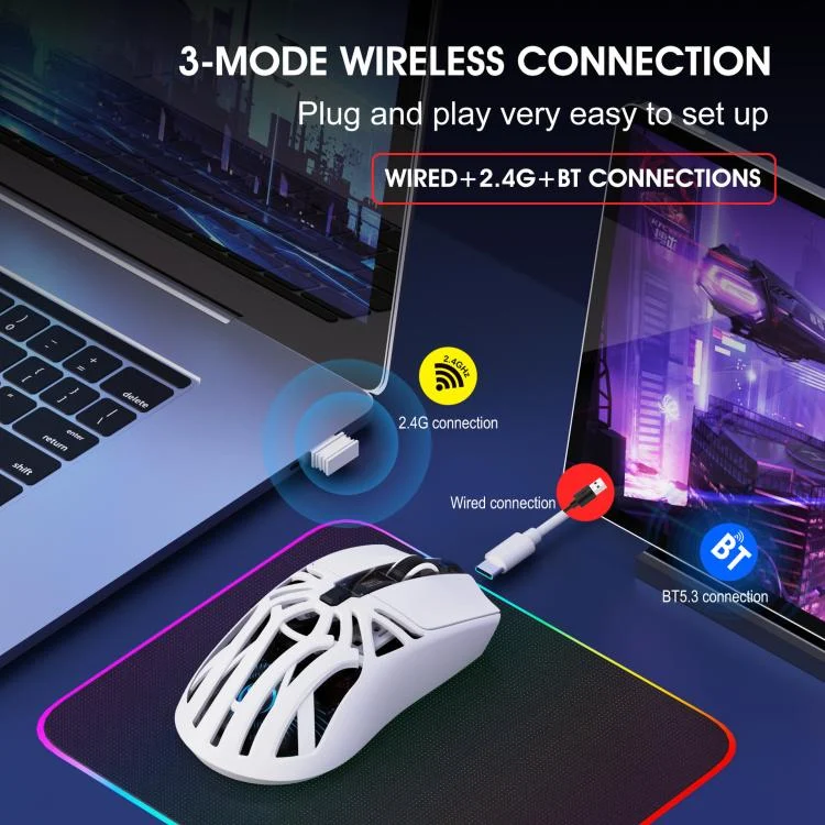 2. Connection mode: Wired + 2.4G + Bluetooth 5.3
