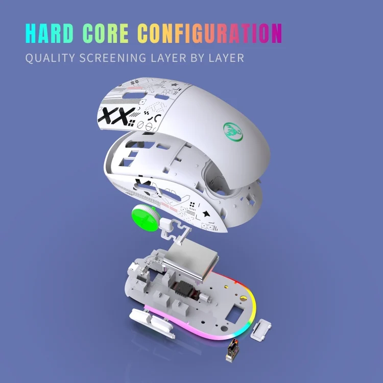 8. Light mode: RGB and other 12 lighting modes, long press DPI for three seconds to switch between 12 lighting modes, including off light mode.