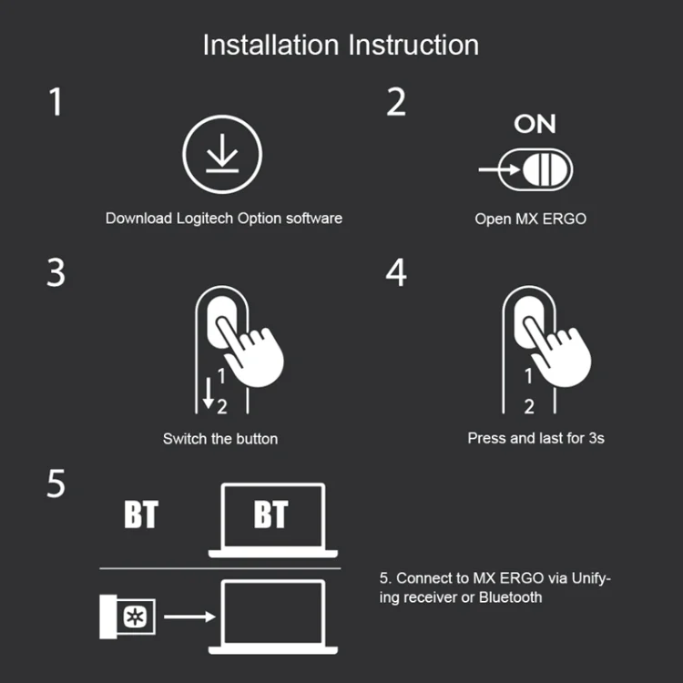 Logitech MX ERGO 440DPI Bluetooth + Unifying Dual-mode Wireless Trackball Optical Mouse