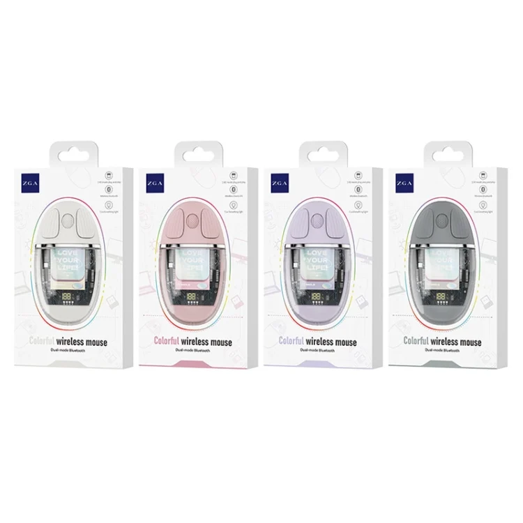 ZGA Colorful Transparent Dual Mode Wireless 2.4G + Bluetooth 5.0 Mouse
