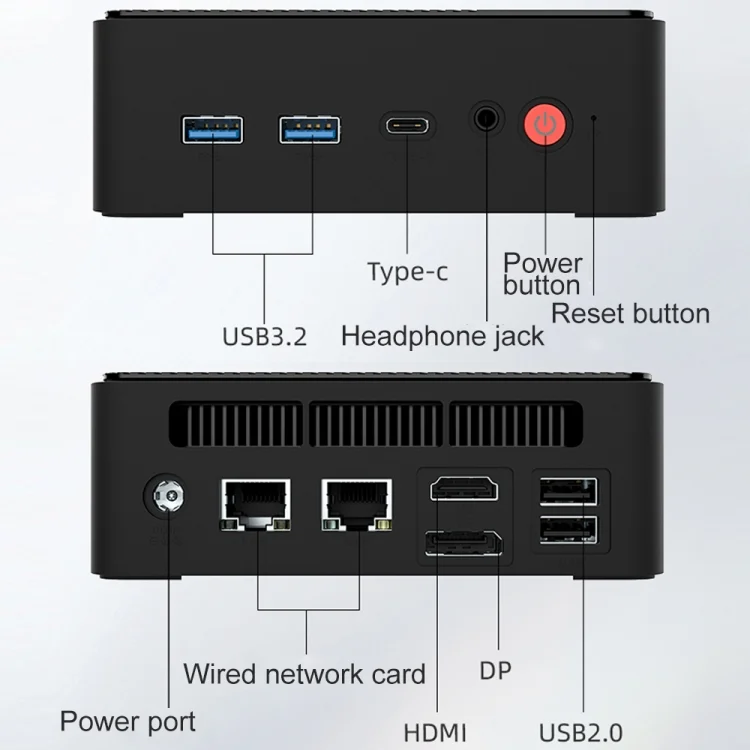 Jumper N100 Pro II Mini PC, Intel 12th Generation Alder Lake-N N100 Quad-core Dual RJ45, RAM: 8GB, ROM: 256GB(EU Plug)