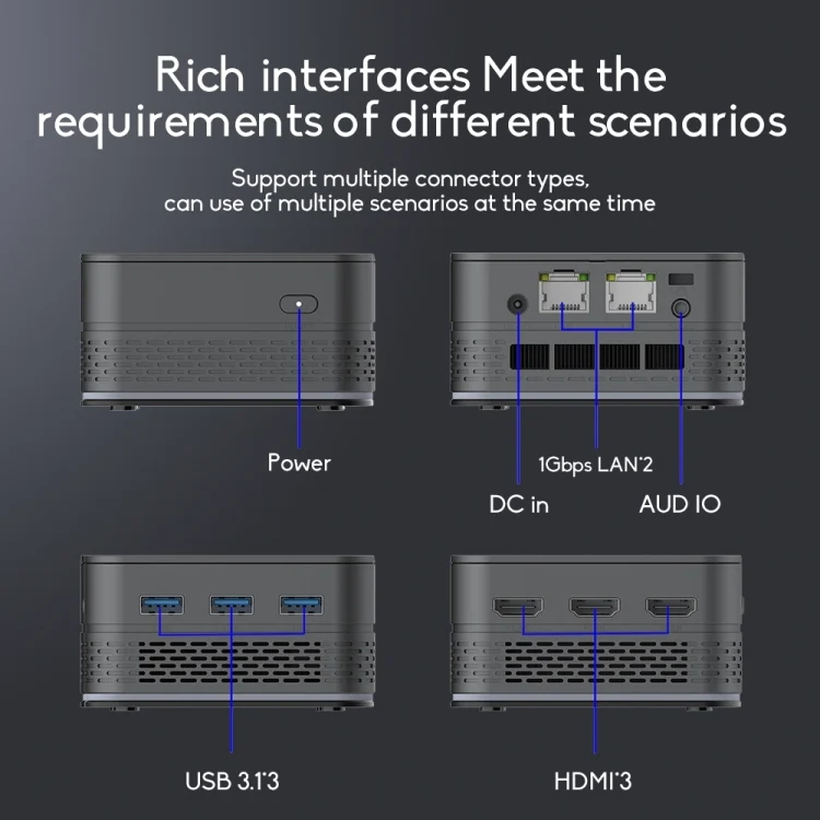 1. The body is equipped with rich interfaces to meet various connection needs and high-speed transmission needs.