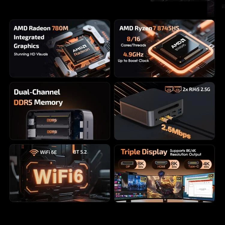 GXMO H90 Pro Windows 11 Mini PC, AMD Ryzen 7 8745HS Octa Core Processor, EU Plug