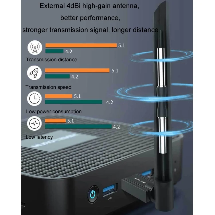 USB Bluetooth 5.1 Computer Adapter 100 Meters Receiving Transmitter