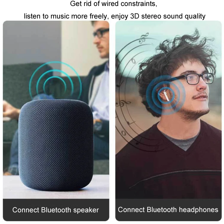 8. Listen to music wirelessly, stable and without lag, connect the computer to Bluetooth speakers/headphones/headset devices, and enjoy CD stereo-like sound quality
