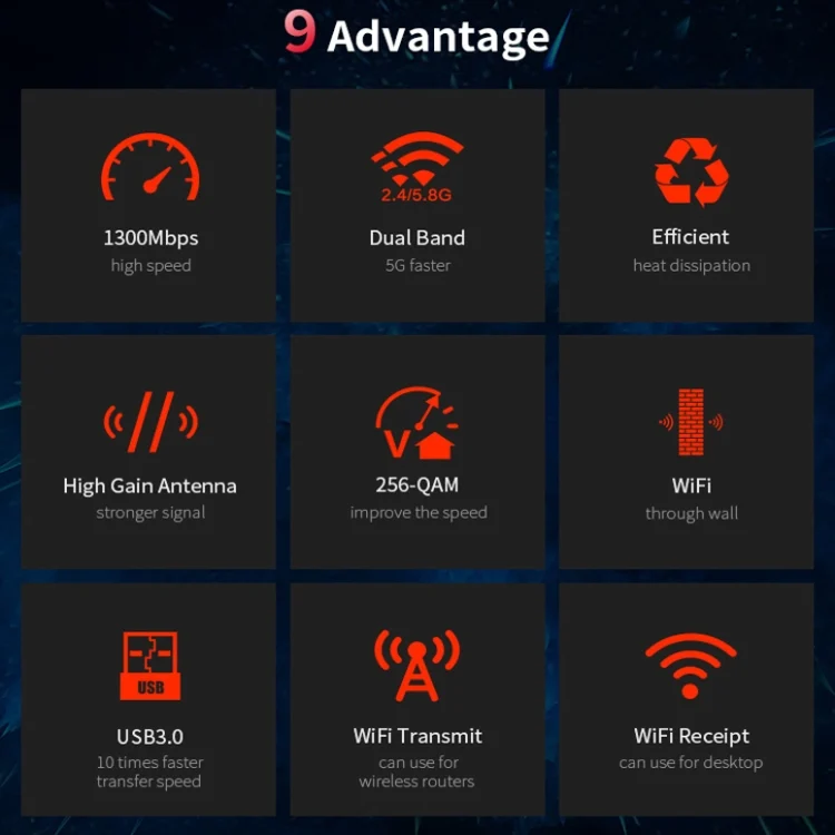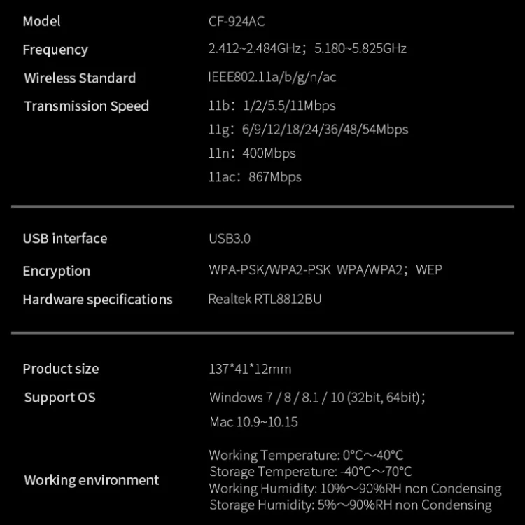 COMFAST CF-924AC V2 1200Mbps Dual Frequency Gigabit USB Computer WIFI Receiver High Power Wireless Network Card