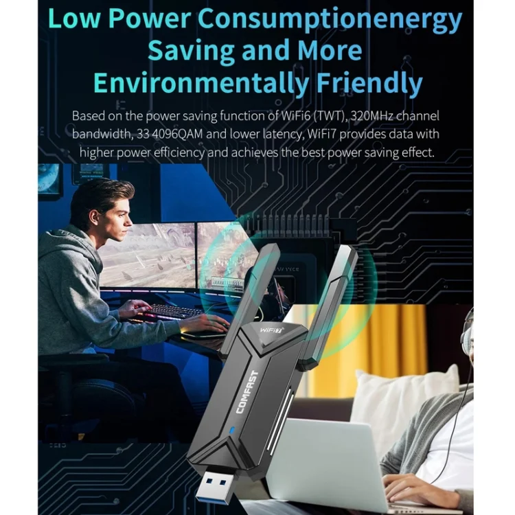 1. WiFi7 USB wireless network card greatly improves network speed. It needs to be used with a tri-band router higher than 6500Mbps to maximize the network cards speed.