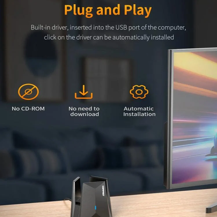 2. 6500Mbps high-speed rate, WiFi7 USB driver-free wireless network card; (Note: It needs to be used with a tri-band router higher than 6452Mbps to make the network card reach the highest rate)